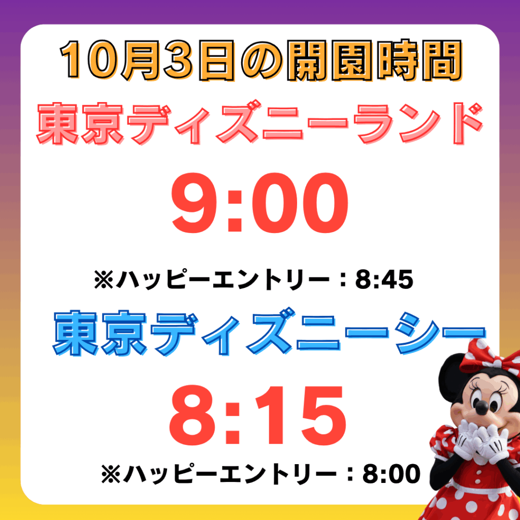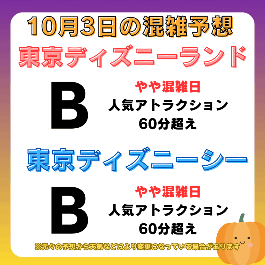2025年10月3日 東京ディズニーランド&シー混雑予想