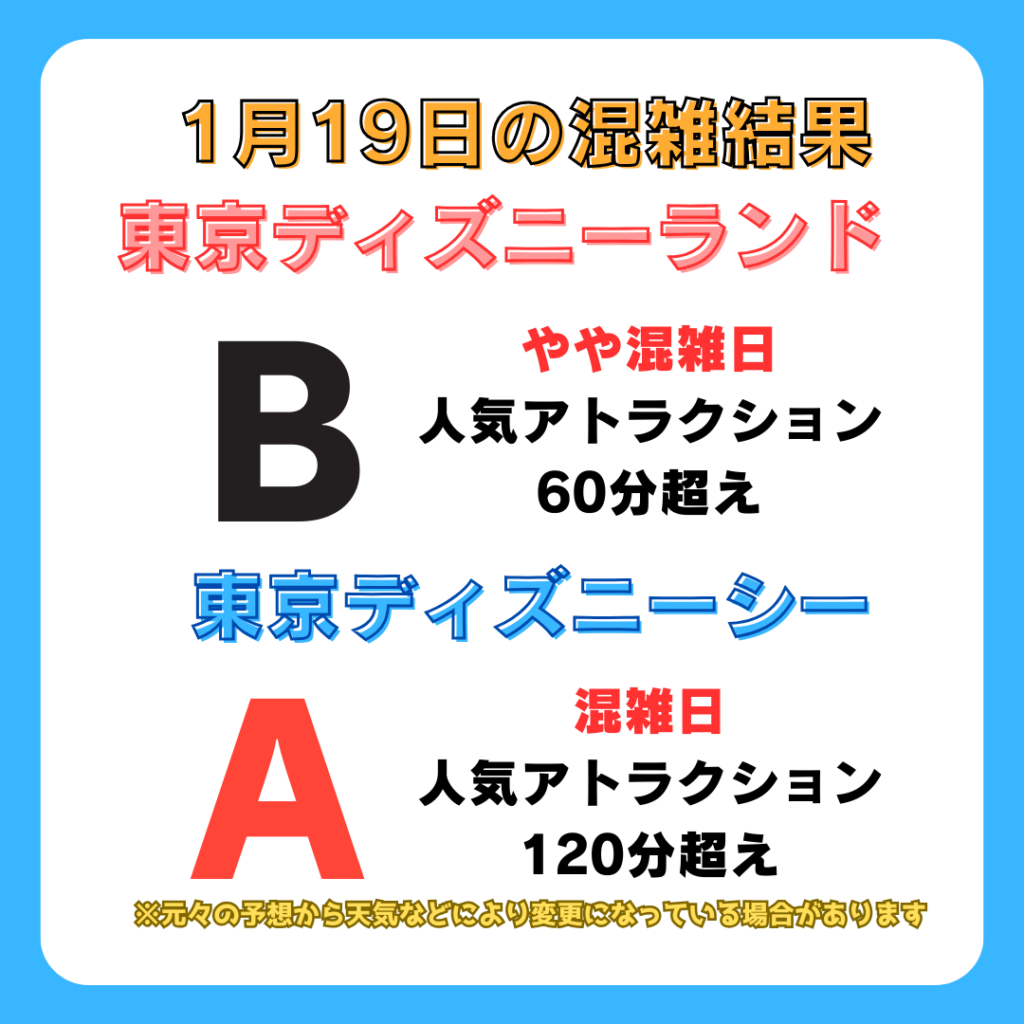 本日のディズニー混雑結果