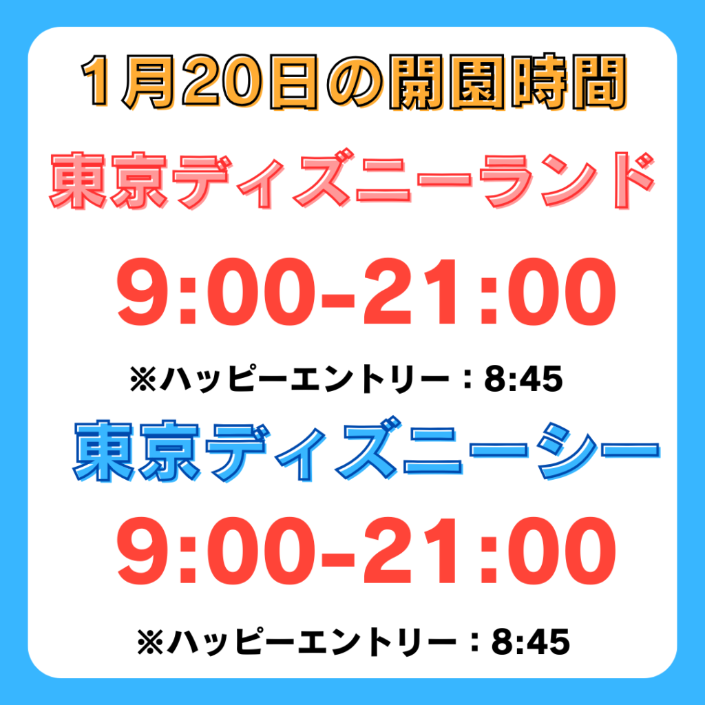 明日のディズニー開園時間