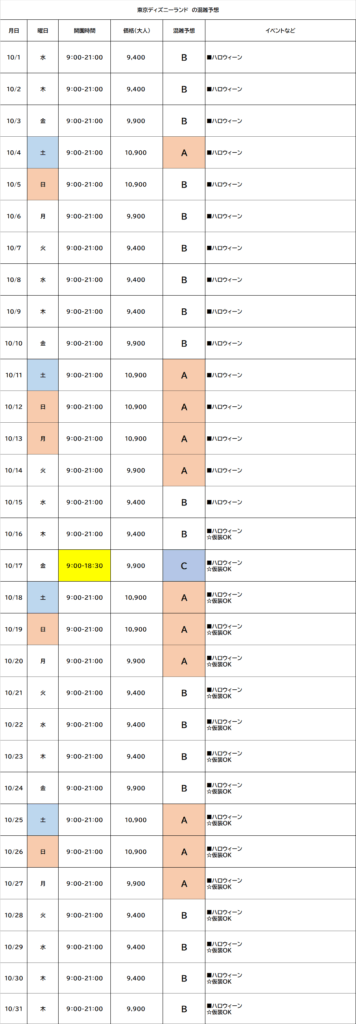 【2025年10月】ディズニー混雑予想カレンダー【解説】